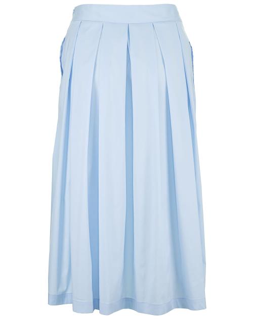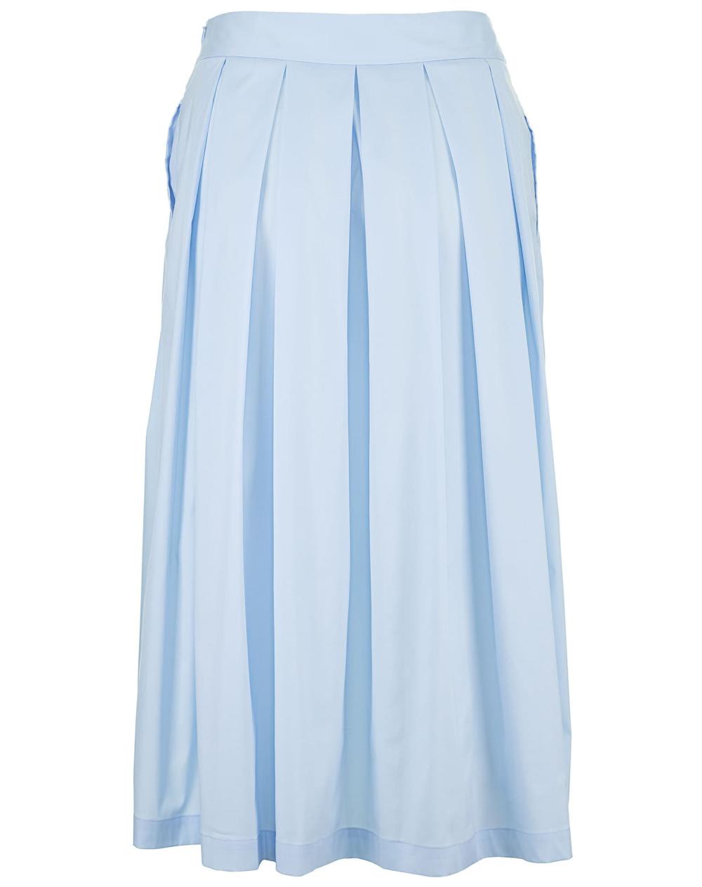 Der Faltenrock Kylie von 0039 Italy in frischem Hellblau ist ein unverzichtbares Sommer-Essential. Die Kombination aus klassischer Eleganz und sportivem Charme macht ihn zum vielseitigen Begleiter für jede Gelegenheit - ob chic oder lässig. Das fließende Material beschert sehr angenehmen Tragekomfort, während die Midilänge für eine wunderschöne Silhouette sorgt. Für einen stilvollen Business-Look lässt sich der Rock perfekt mit einer leichten Bluse kombinieren, wohingegen ein T-Shirt und Sneaker ihm eine moderne, entspannte Note verleihen. Egal ob elegant oder casual, dieser Rock bleibt stets zeitlos und stilvoll.
