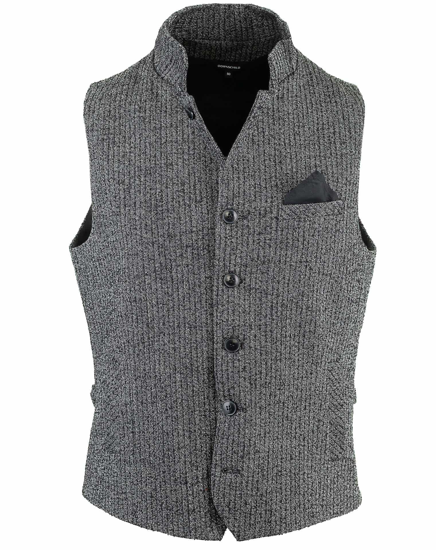 Die Weste von Dornschild aus feinstem italienischen Stoff ist eine gute Wahl für Männer, die das Besondere schätzen. In exklusiver Optik präsentiert sich die Weste mit umlegbarem Stehkragen und durchgehender Knopfleiste und ist somit eine zeitgemäße Alternative zum Sakko. Das feine Muster in Schwarz und Grau sowie die Fronttaschen vollenden den Look auf stilvolle Weise.
