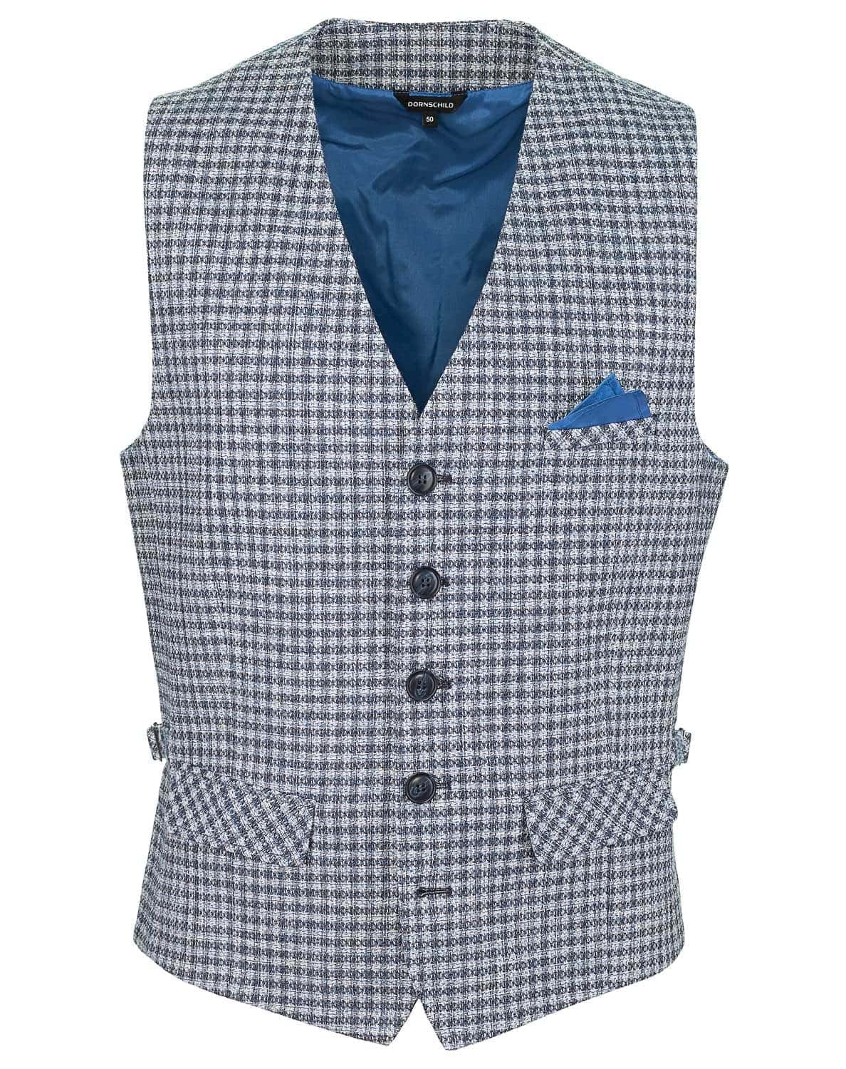 Die Herrenweste von Dornschild in Hellgrau und Blau verleiht jedem Outfit eine frische, modische Note. Aus feinsten italienischen Stoffen gefertigt, bietet die Weste viele Styling-Möglichkeiten von lässig bis schick und ist eine perfekte Alternative zum Sakko. Die edlen Knöpfe sowie das Einstecktuch runden den urbanen Stil gekonnt ab.