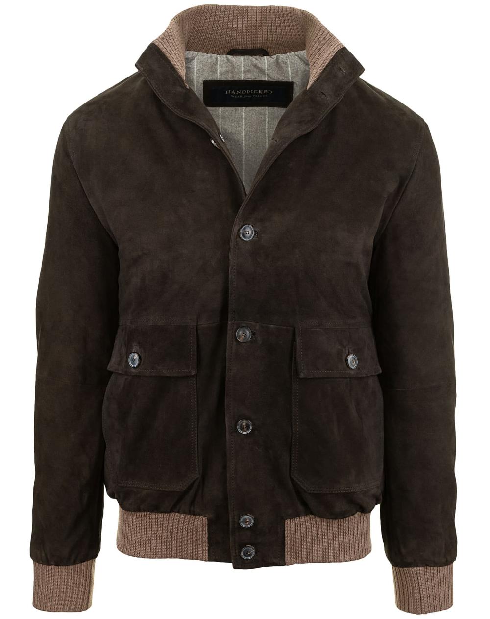 Der exklusive Blouson von Hand Picked aus hochwertigem Velourleder in edlem Dunkelbraun vereint zeitlosen Stil mit moderner Eleganz. Die weiche Haptik des Leders und die wärmende Wattierung sorgen für ein angenehmes Tragegefühl, während die durchdachte Verarbeitung klassische Akzente setzt. Strickbündchen an den Ärmeln, am Saum und am Stehkragen verleihen dem Blouson eine sportive Note und bieten gleichzeitig optimalen Sitz und Schutz vor kühler Luft. Dieser Blouson ist ein Must-Have für Herren, die Wert auf Qualität und zeitlose Ästhetik legen.