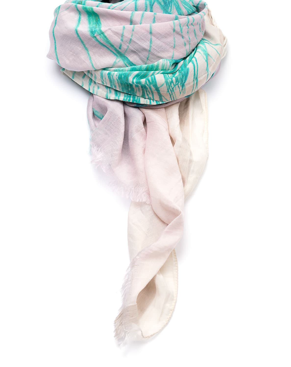 Das edle Tuch von Leigh & Luca besticht durch den ausdrucksstarken Print in Grüntönen mit Farbverläufen. Dank der feinen Qualität aus Seide und Baumwolle fühlt sich dieses exklusive Accessoire wunderbar an und verleiht jedem Look eine besondere Note. Aufgrund der Größe lässt sich dieses Tuch auch als elegante als Stola tragen.