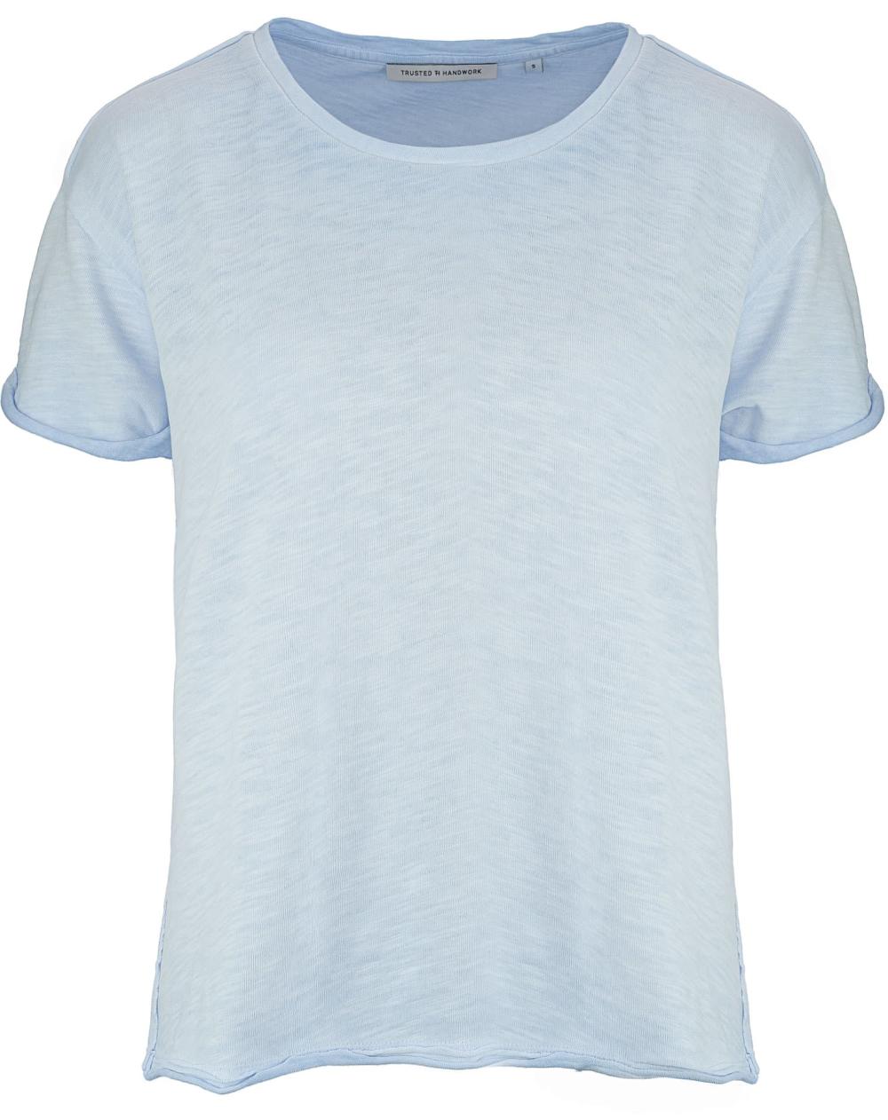 Für sommerliche Looks ist das Rundhals T-Shirt von Trusted Handwork für Damen in Hellblau ein lässiger Begleiter. Die hochwertige Baumwollqualität sorgt für angenehmen Tragekomfort, während die Inside-Out Nähte einen besonderen Akzent setzen.