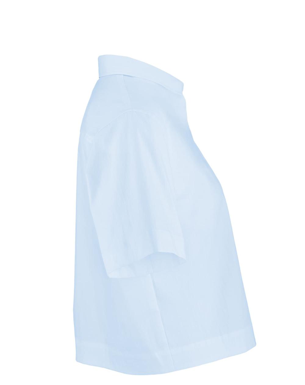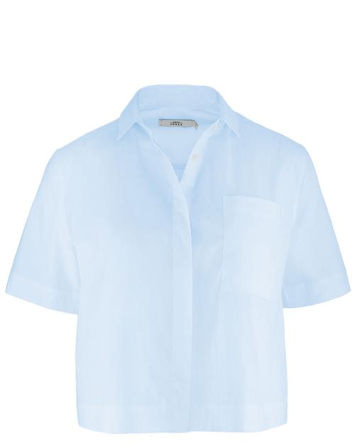 Die Kurzarm Bluse Miranda von 0039 Italy in Hellblau besticht durch ihr minimalistisches Design und einen modernen, geraden Schnitt mit verkürzter Länge. Die sanfte Farbgebung verleiht ihr eine frische und zeitlose Eleganz, die sich vielseitig kombinieren lässt - perfekt für Büro, Freizeit oder besondere Anlässe. Aus hochwertigem Baumwoll-Mix mit Elasthan gefertigt, begeistert dieses Modell mit einem luftigen Tragegefühl. Kombinieren Sie diese Bluse mit dem passenden Rock Kylie für einen wunderschönen Sommerlook.