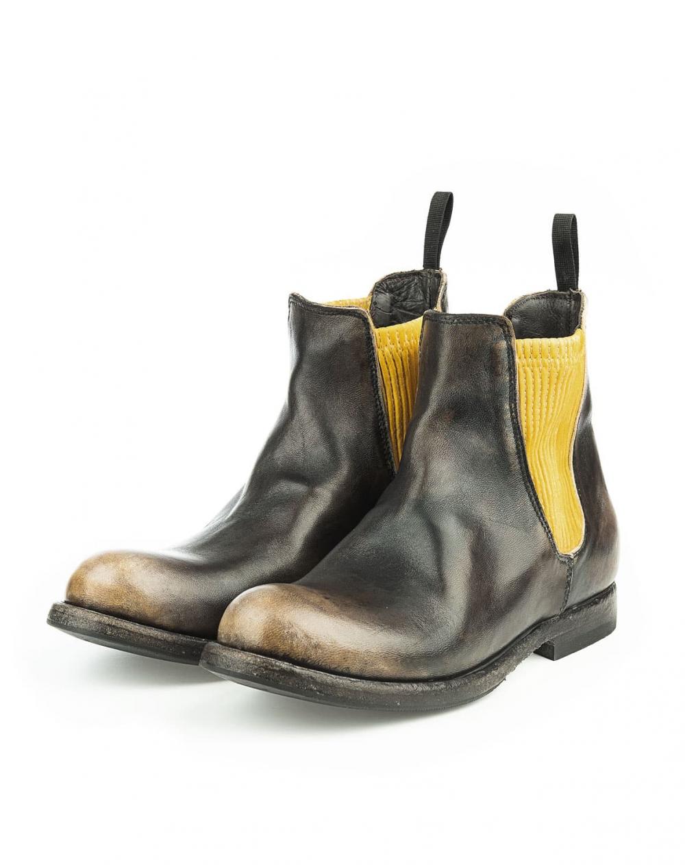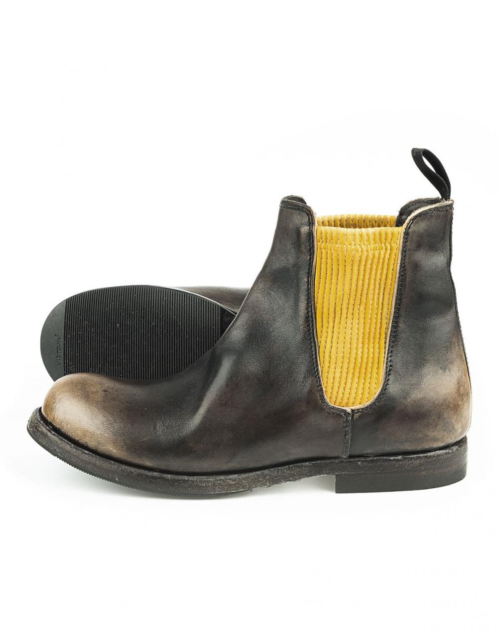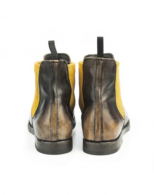 Chelsea Damenboot von Shoto aus weichem Büffelleder, der höchsten Ansprüchen gerecht wird. In traditioneller Handarbeit gefertigt, überzeugt dieses Modell mit außergewöhnlichem Design und bester Qualität. Durch die besondere Bearbeitung des Leders setzt sich die Spitze und Ferse farblich ab, was den individuellen Charakter extra betont. Die seitlichen Stretch-Einsätze in Kontrastfarbe runden den Look auf perfekte Weise ab.