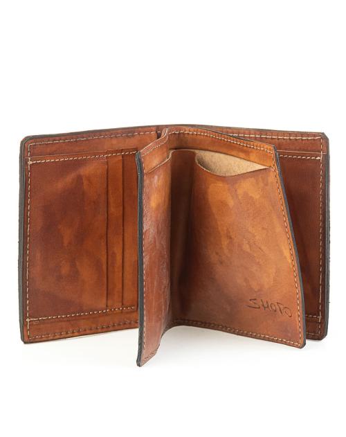 Die exklusive Geldbörse von Shoto aus dunkelbraunem, stark genarbtem Pferdeleder ist ein stilvolles Accessoire. Ebenso wie die hochwertigen Schuhe von Shoto ist auch dieses Portemonnaie handgefertigt und das Leder aufwendig bearbeitet. Jedes Exemplar ist ein Unikat und kann sich in Nuancen farblich unterscheiden.