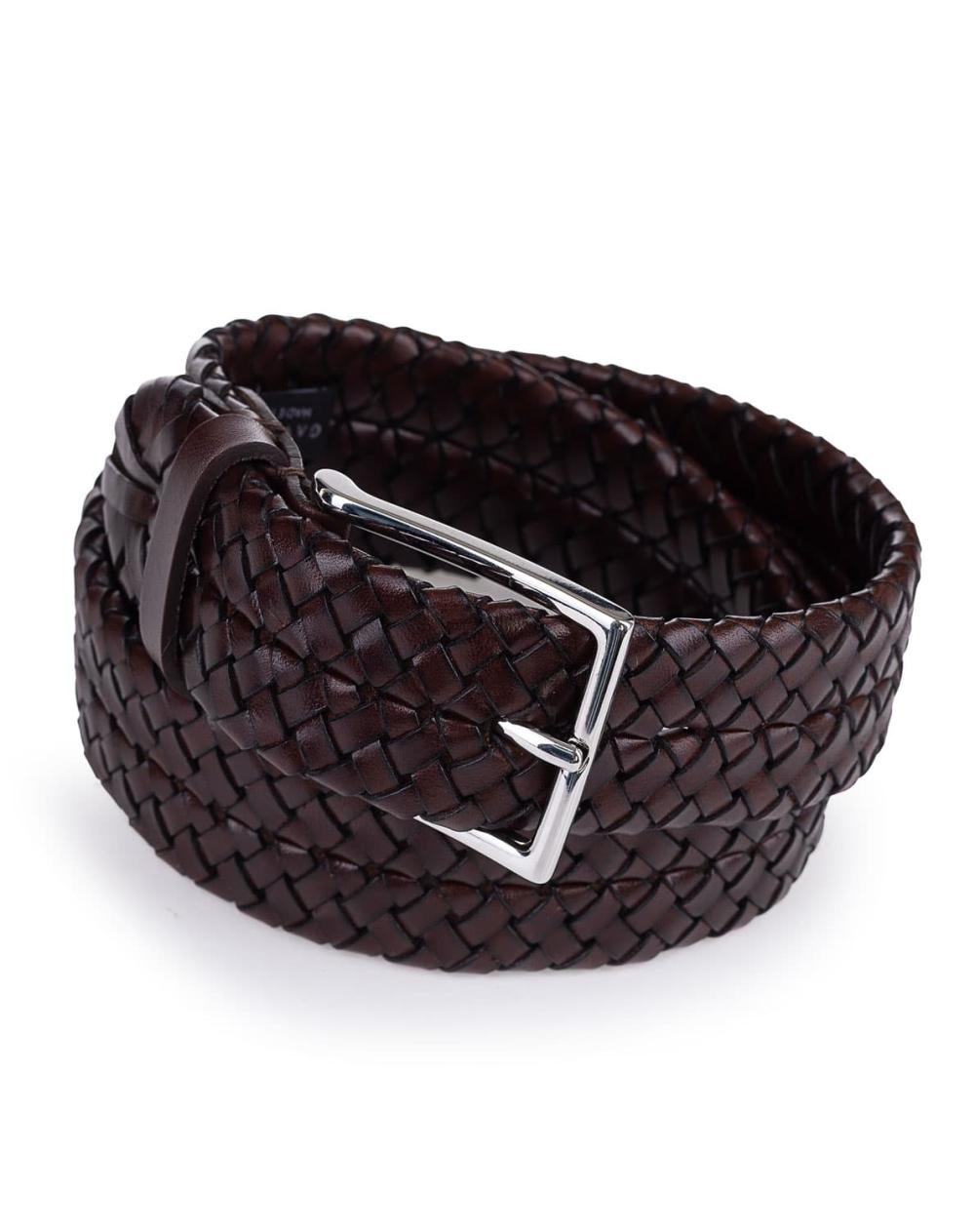 Der handgeflochtene Herrengürtel von Gavazzeni aus dunkelbraunem Büffelleder ist ein edles Accessoire, das jedes Outfit stilvoll abrundet. Die silberfarbene Schließe setzt einen klaren, eleganten Akzent und macht den Gürtel zum idealen Begleiter für Business- und Casual-Looks. Hochwertig verarbeitet und stilvoll im Design, ein Must-have für Herren mit Sinn für Qualität.