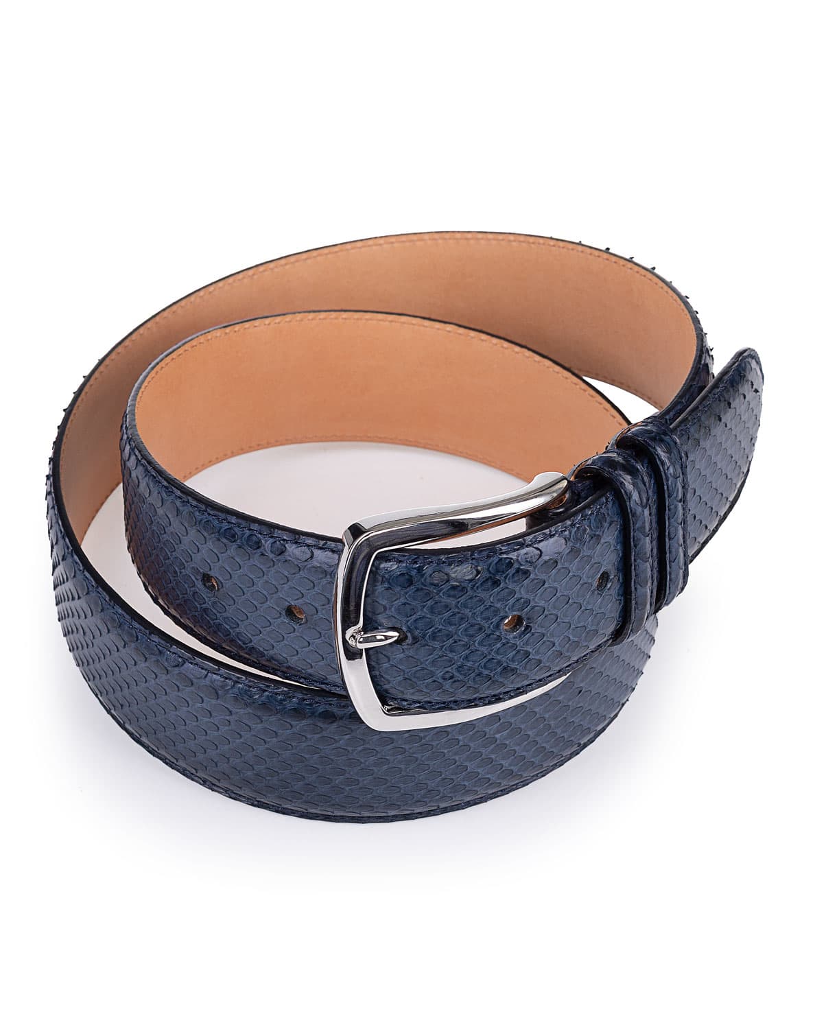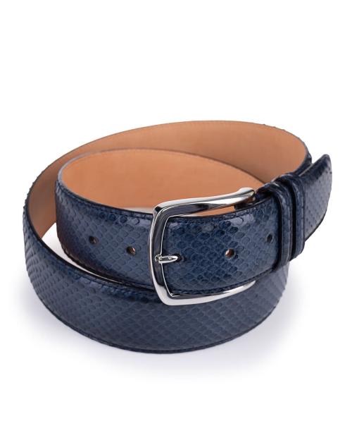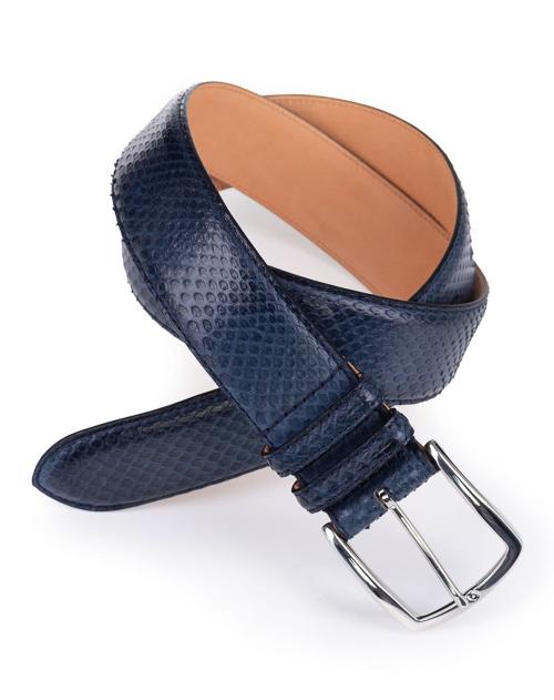 Luxuriöser Herrengürtel von Gavazzeni aus Python-Leder in Dunkelblau. Mit diesem edlen Gürtel verleihen Sie Ihrem Outfit eine exklusive Note. Ob zum Anzug, zur Chino oder Jeans, dieses besondere Accessoire ist ein Statement-Piece für Herren, die Stil und Qualität schätzen.