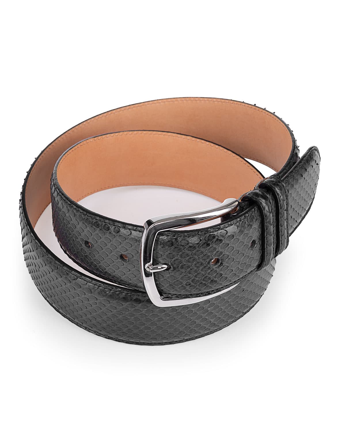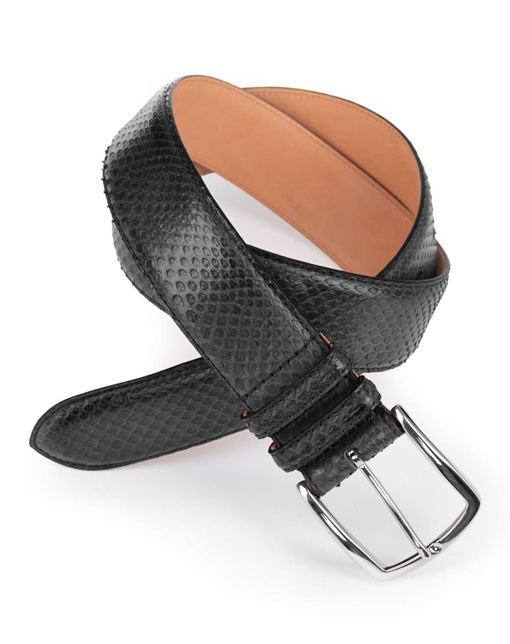 Luxuriöser Herrengürtel von Gavazzeni aus Python-Leder in Anthrazit-Schwarz. Mit diesem edlen Gürtel verleihen Sie Ihrem Outfit eine raffinierte,exklusive Note. Ob zum Anzug, zur Chino oder Jeans, dieses besondere Accessoire ist ein Statement-Piece für Herren, die Stil und Qualität schätzen.