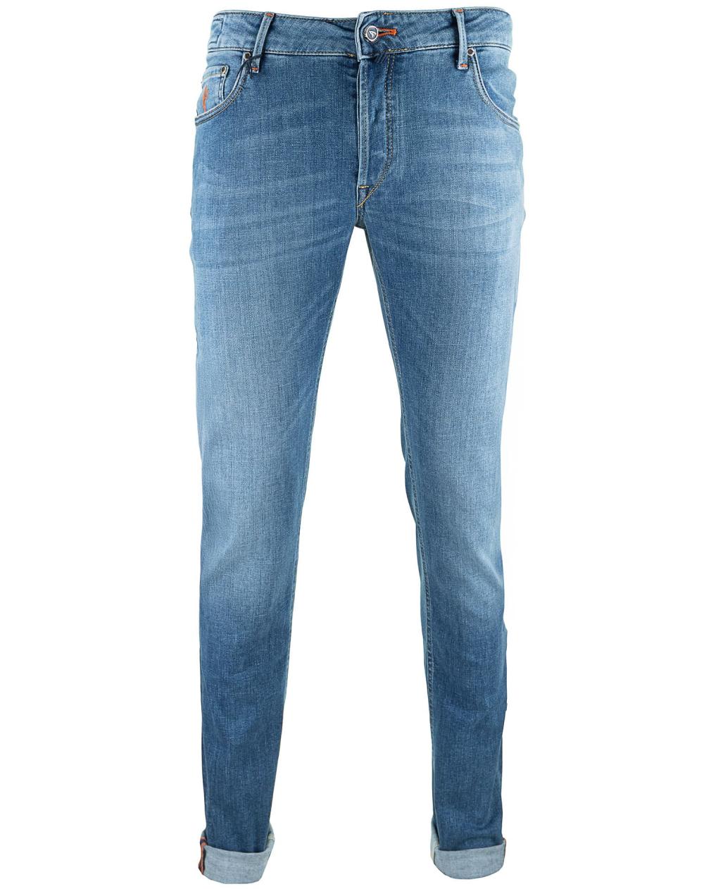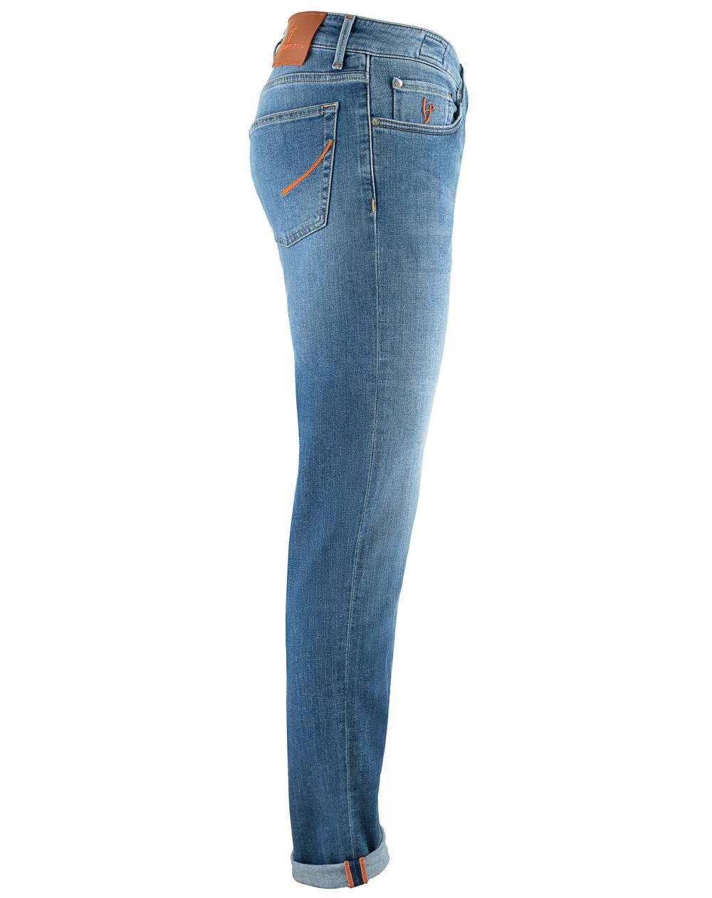 Die hochwertige Herren Jeans Orvieto Comfort von Hand Picked präsentiert sich in authentischer Vintage Waschung. Die angenehme Baumwollqualität mit Stretchanteil sorgt für optimalen Sitz und hohen Tragekomfort, während sich die mittelblaue Waschung vielseitig kombinieren lässt.