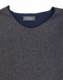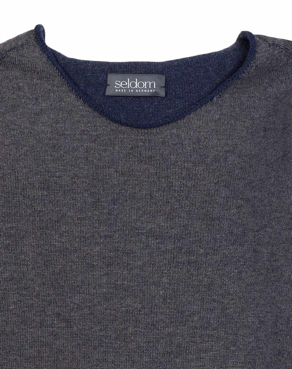 Der Rundhals Pullover vom Strickspezialisten Seldom ist ein zeitloser Alltagsbegleiter, der sich sehr vielseitig kombinieren lässt. Aus angenehm weicher Merinowolle nahtlos gestrickt, überzeugt dieser Pullover mit bestem Tragekomfort. Die Rollbündchen am Halsausschnitt und an den Ärmeln in Dunkelblau sorgen für die nötige Lässigkeit.