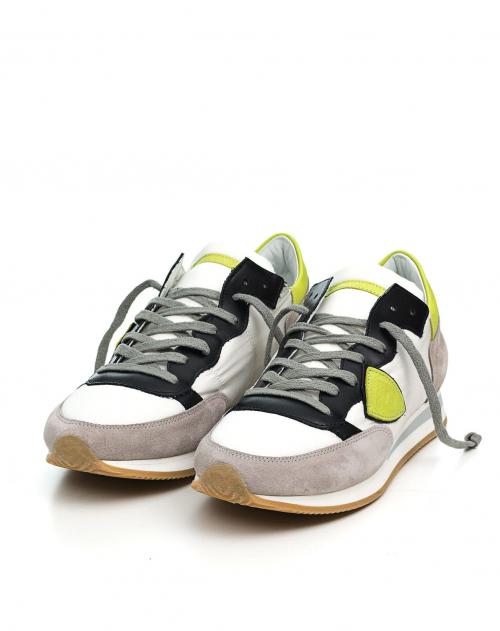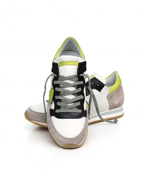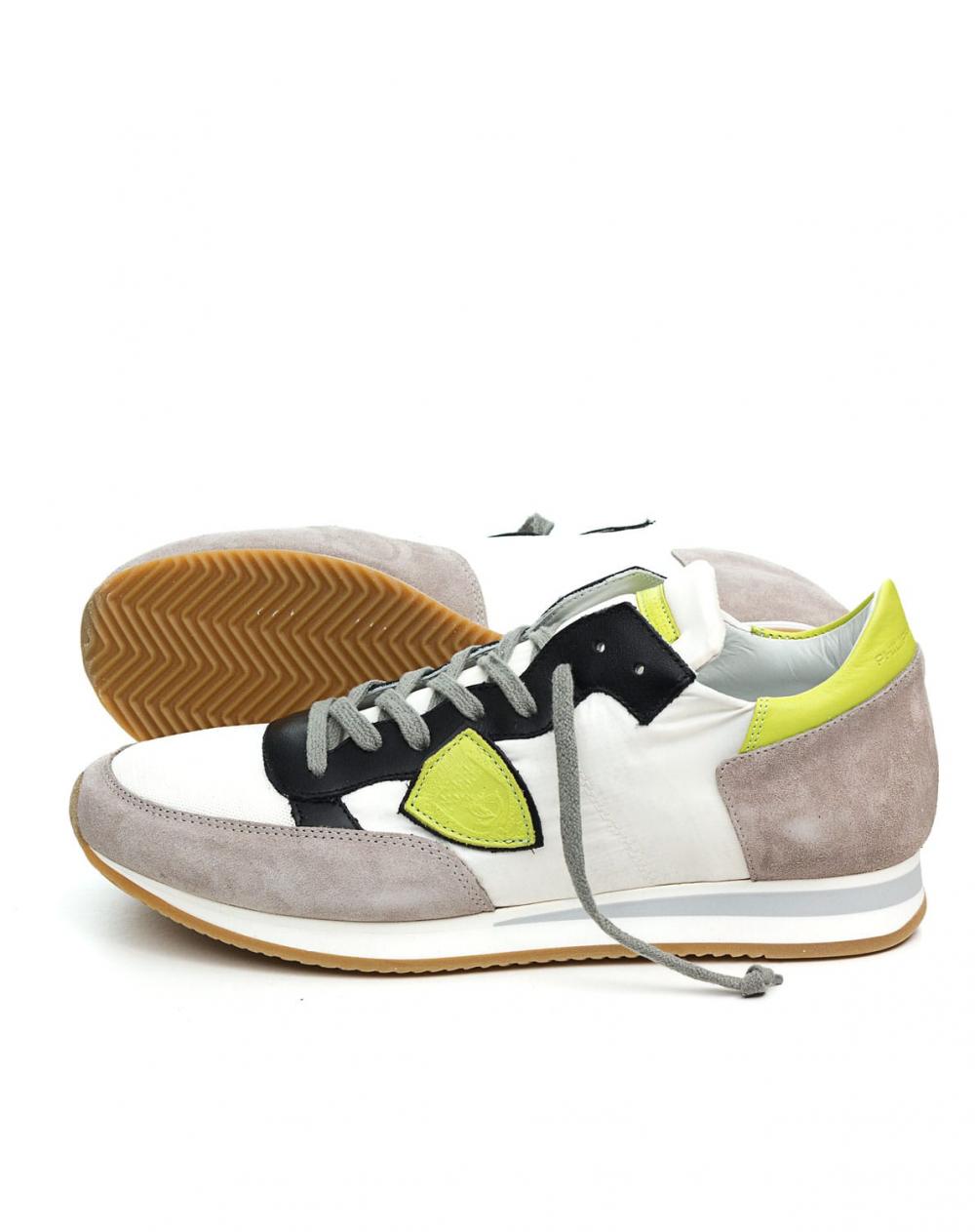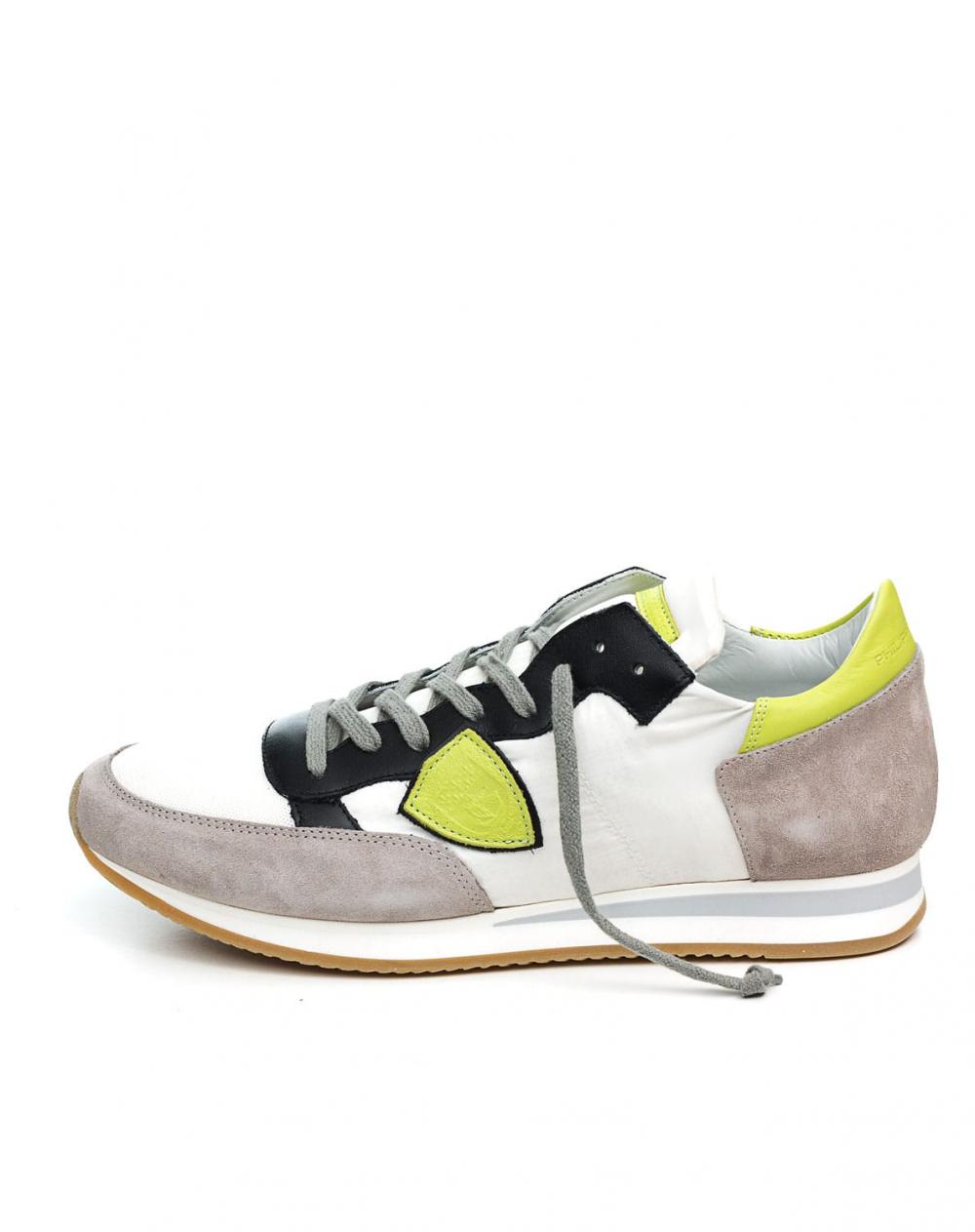 Dieser modische Herrensneaker Tropez von Philippe Model überzeugt mit einem coolen Farbmix und mit bestem Tagekomfort. Die limefarbenen und schwarzen Lederdetails verleihen diesem Modell den besonderen Pfiff und runden den sportlich lässigen Stil perfekt ab.