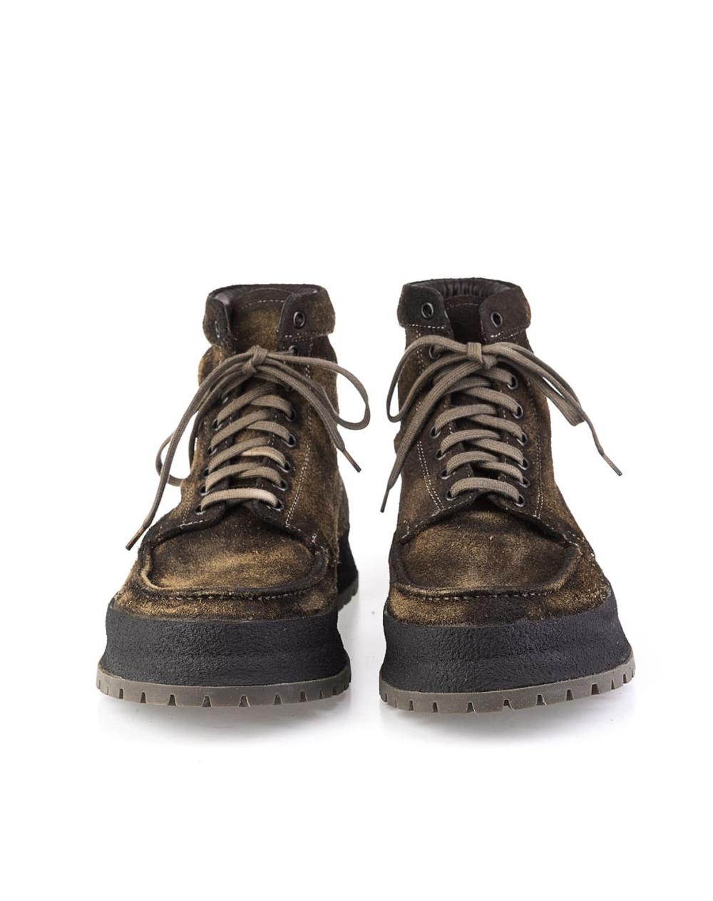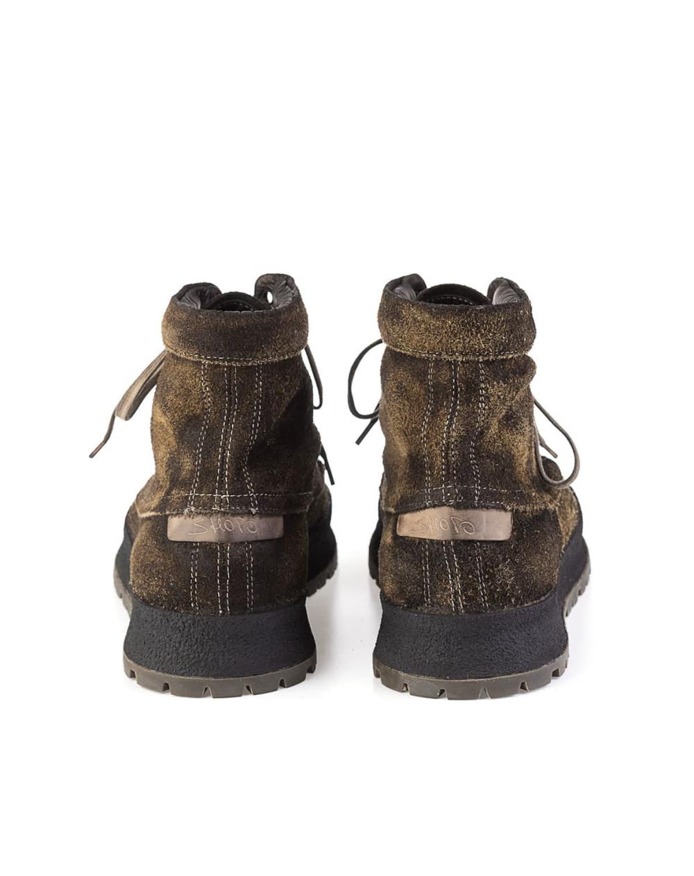 Der Herrenboot von Shoto aus Elchleder ist eine gute Wahl für für Männer, die einen authentischen Stil bevorzugen. Der aufwendige Fertigungsprozess verleiht dem von Hand gefertigten Schuh eine exklusive und zugleich kernige Vintage-Optik, die durch das aufgeraute, in Brauntönen changierende Leder besonders betont wird. Der markante Rahmen mit der Profil-Vibramsohle passt hervorragend zu diesem Modell und rundet das Design gelungen ab.