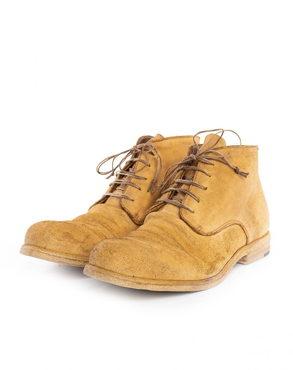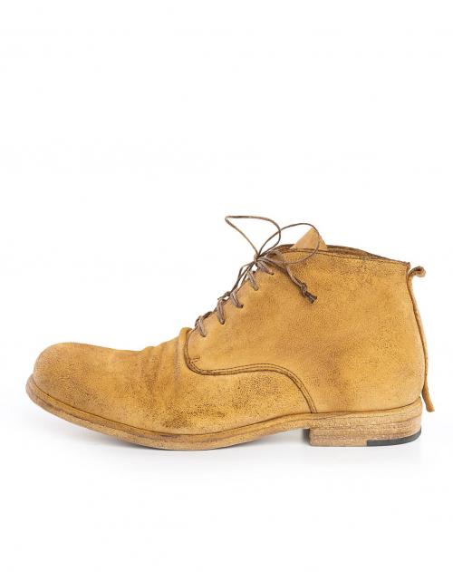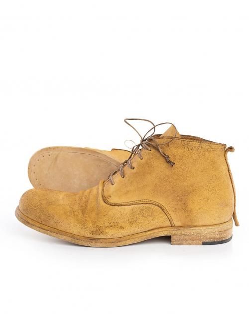Dieser Schnürboot Dinar Senape von Shoto ist erste Wahl für einen maskulinen und authentischen Look. In traditioneller Handarbeit gefertigt, überzeugt dieses Modell aus gewaschenem Hirschleder mit außergewöhnlicher Qualität und besten Trageeigenschaften. Das Leder wird in einem sehr aufwendigen Verfahren bearbeitet, wodurch die kernige und griffige Struktur fühlbar wird und dem Schuh einen einzigartigen Charakter verleiht. Die typische, von Hand gelegte Falte rundet das Design unverwechselbar ab.