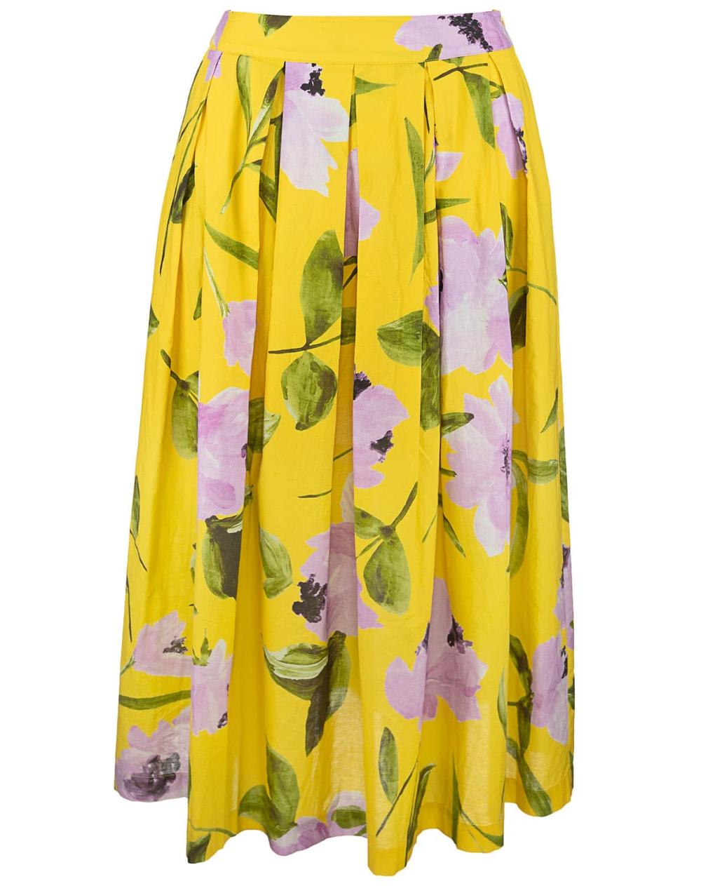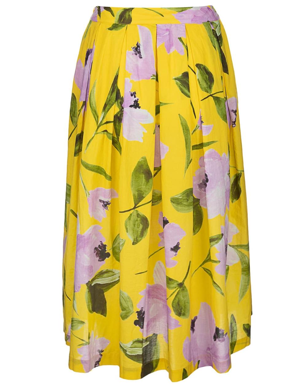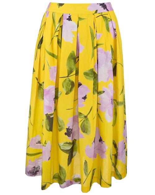 Der Rock Kylie von 0039 Italy mit floralem Allover-Print bringt sommerliche Frische in den Kleiderschrank. Aus leichter Baumwolle gefertigt, sorgen die Midilänge und die Kellerfalten für einen schwungvollen Auftritt. Kombinieren Sie den Rock mit der Bluse Miranda für einen wunderschönen Sommerlook.