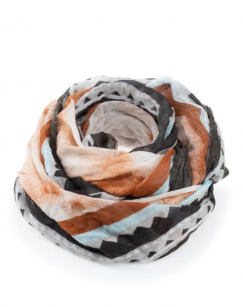 Das exklusive Tuch von 813 Ottotredici begeistert mit einer harmonischen Farbgestaltung in warmen Rosttönen, abgesetzt mit einem Rand in Hellblau und Schwarz. Der hochwertige Materialmix aus Modal, Leinen und Seide beschert pures Tragevergnügen und macht dieses wunderbare Tuch zum perfekten Accessoire mit vielen Kombinationsmöglichkeiten.