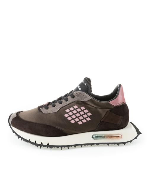 Der Damen Sneaker Space Race in Dunkelbraun vom italienischen Label BePositive versprüht positiven Lifestyle und begeistert mit einer trendigen Optik. Von Hand gefertigt, überzeugt dieser Sneaker mit der markanten Sohle mit hohem Tragekomfort, während der Materialmix aus Velour- und Glattleder sowie matt glänzendem Nylon das Design gelungen vollendet. Ein absolut cooler Sneaker, der jedem Look eine extravagante Note verleiht.