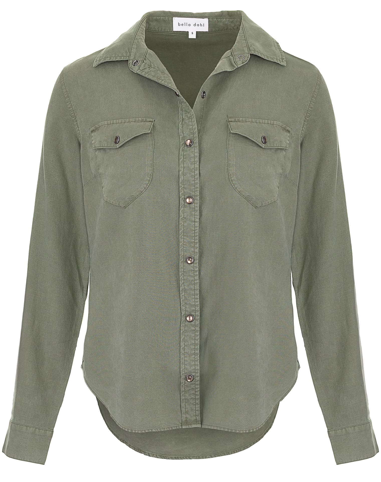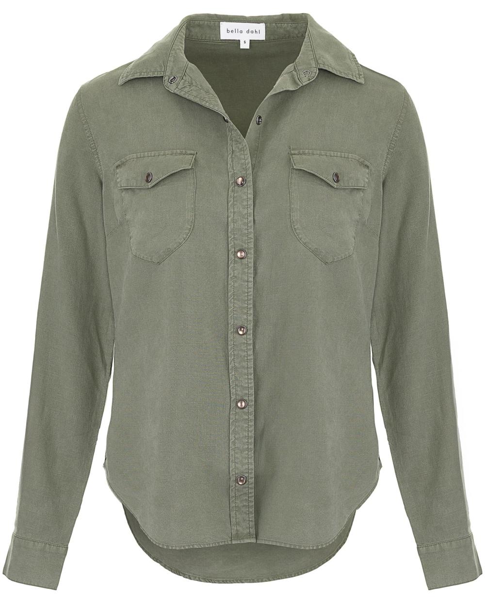Diese Bluse von Bella Dahl in Oliv verleiht jedem Outfit eine lässige Note. Aus weich fließendem Lyocell mit softem Griff Griff gefertigt, begeistert diese Bluse mit hohem Tragekomfort, während der gerade Schnitt und die Brusttaschen den modischen Style abrunden.