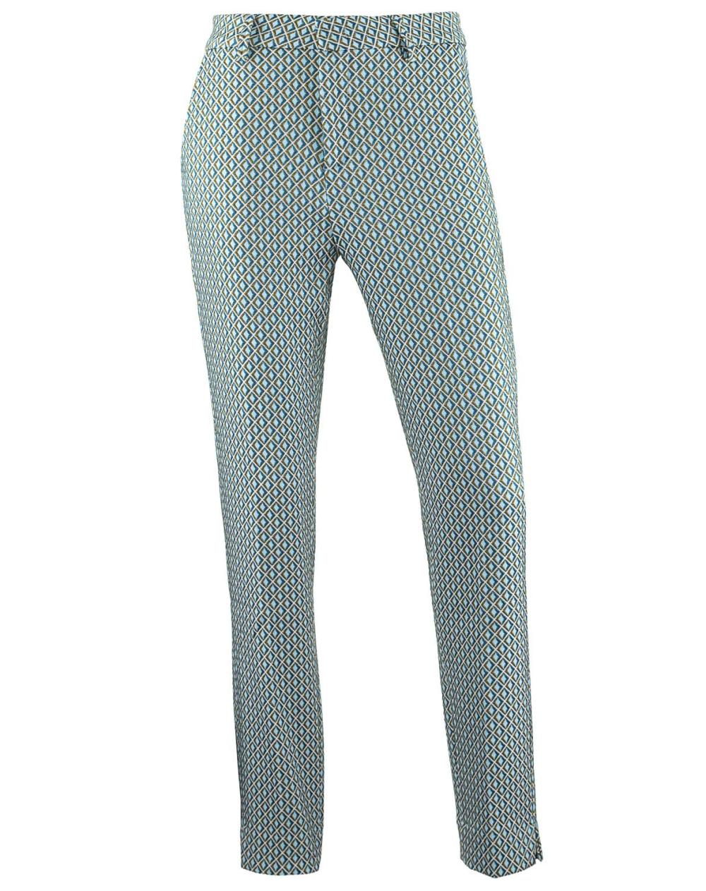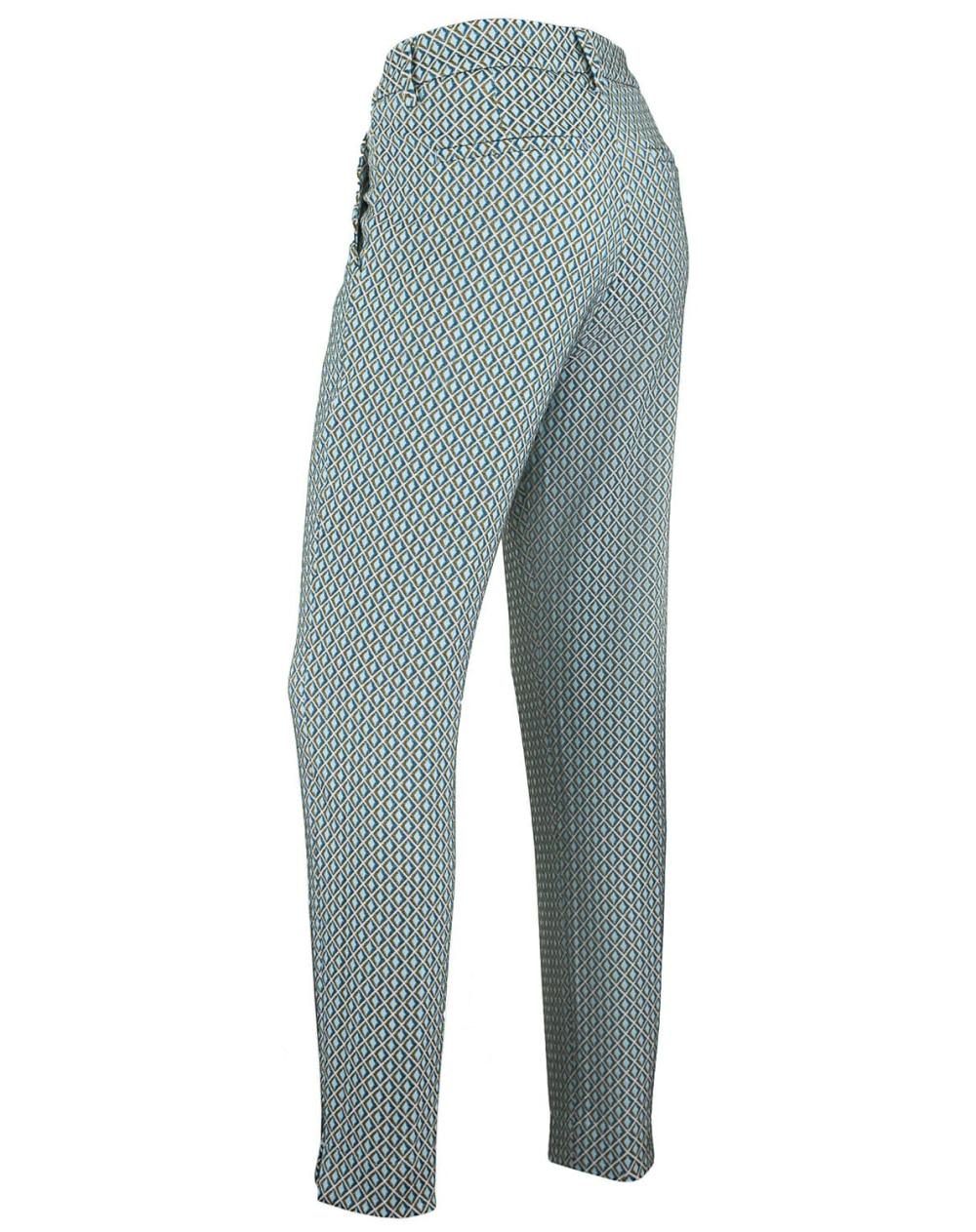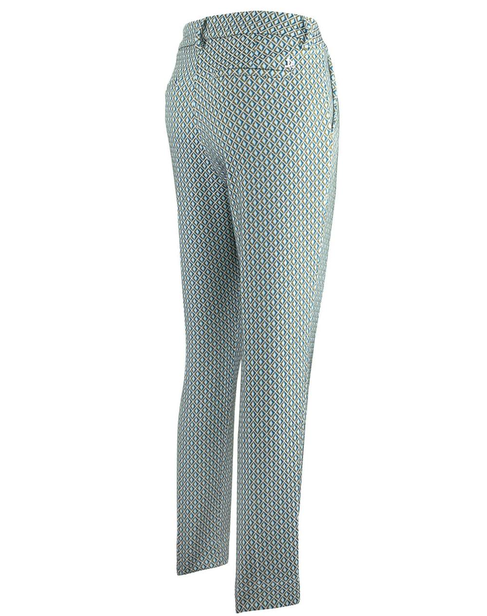 Die Damenhose von Dolores ist ein unverzichtbarer Begleiter zu sommerlichen Looks. Das ausdrucksstarke Jacquard-Muster in Sky Blue bietet vielfältige Kombinationsmöglichkeiten, während die hochwertige Jersey-Qualität mit hohem Tragekomfort überzeugt. Der klassische Chino-Schnitt mit seitlichen Eingrifftaschen rundet den sportiven Style gekonnt ab.