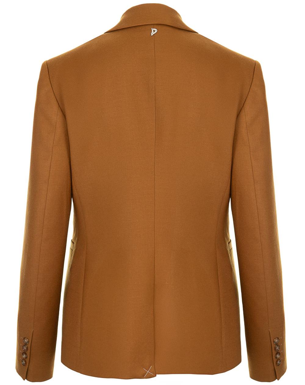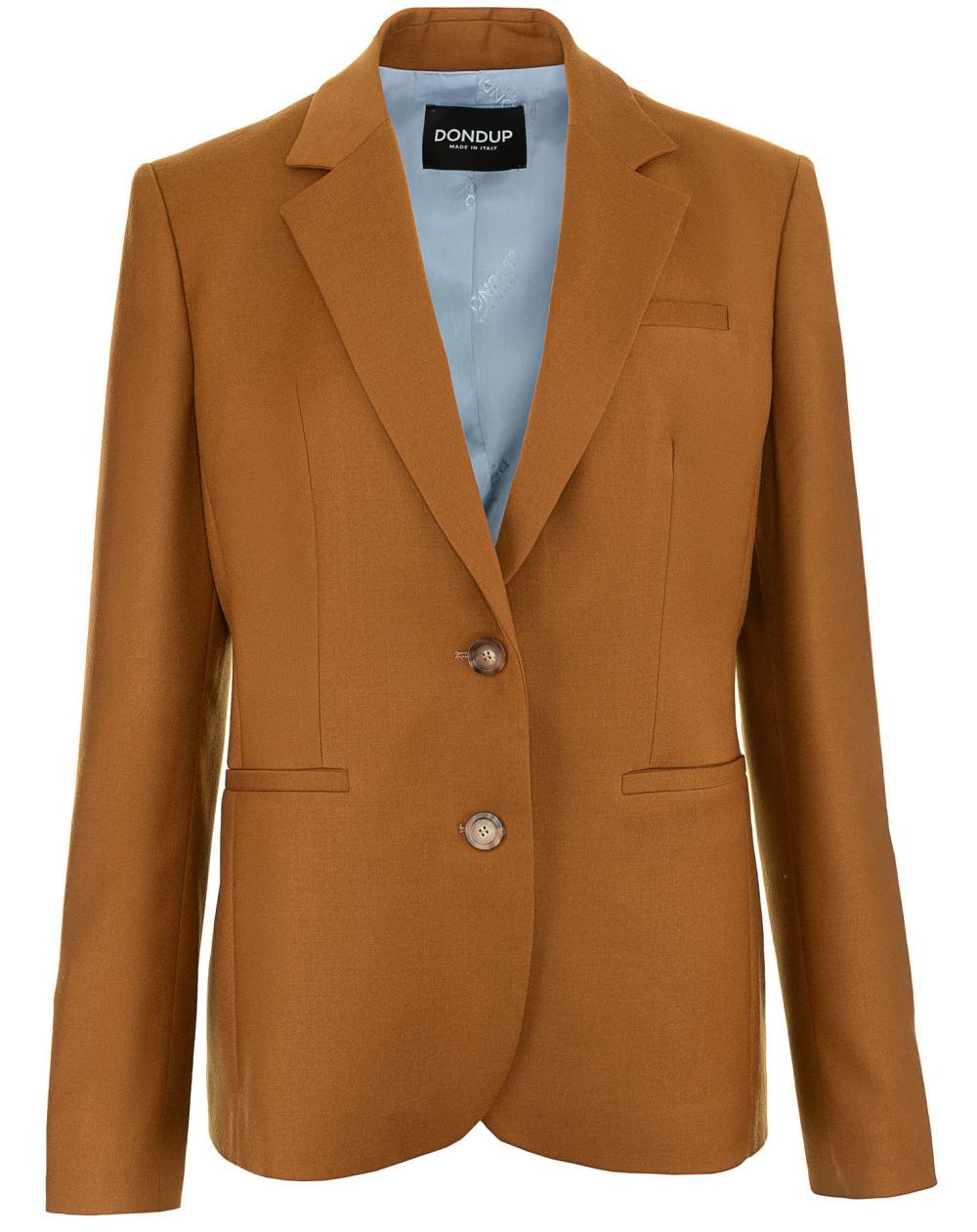 Der Damenblazer von Dondup in edlem Karamellton vereint zeitlose Eleganz mit moderner Lässigkeit. Gefertigt aus feinster Wolle mit leichtem Stretchanteil, bietet er angenehmen Tragekomfort. Der klassische Einreiher mit zwei-Knopf-Verschluss und schmaler Passform unterstreicht die feminine Silhouette, während die Leistentaschen, der Reverkragen sowie ein Gehschlitz in der hinteren Mitte den Look stilvoll abrunden. Ob zum Business-Outfit oder lässig kombiniert, mit diesem edlen Blazer ist ein sportlich-schicker Auftritt garantiert.