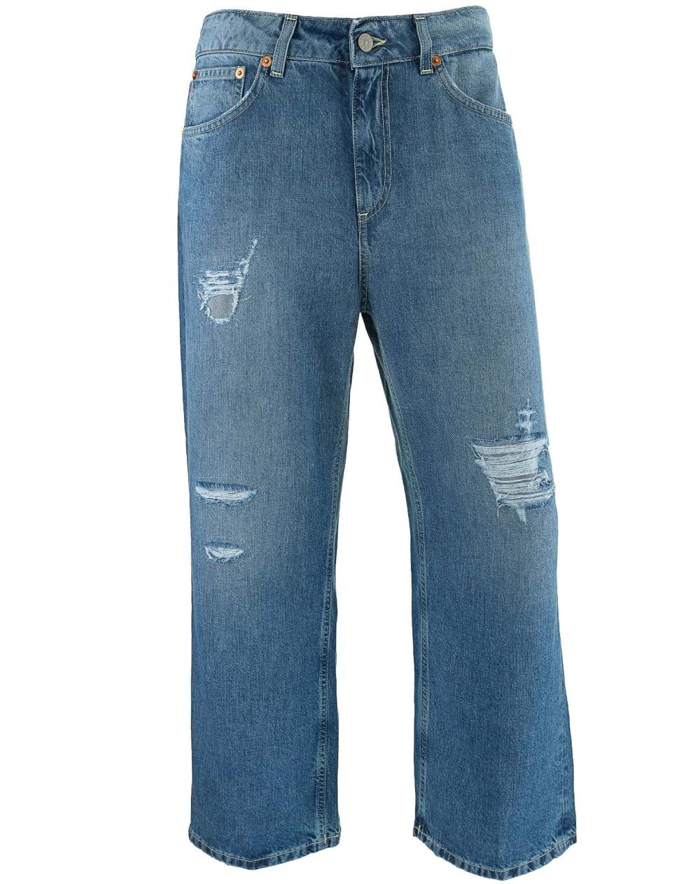 Die Wide-Leg Damenjeans Tami von Dondup vereint lässigen Stil mit sommerlichem Tragekomfort. Aus weich fließendem Lyocell gefertigt, bietet diese Jeans ein leichtes Tragegefühl, wöhrend die verkürzte Beinlänge einen luftigen Look kreiert. Einen besonderen Akzent setzen die unterlegten Destroyed-Details, die die Coolness dieser Jeans perfekt betonen.