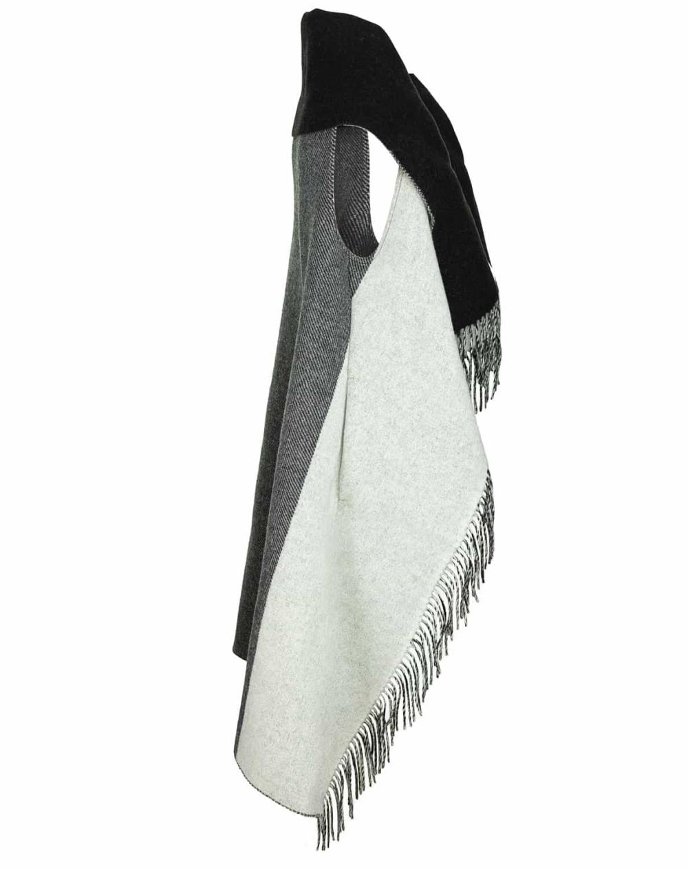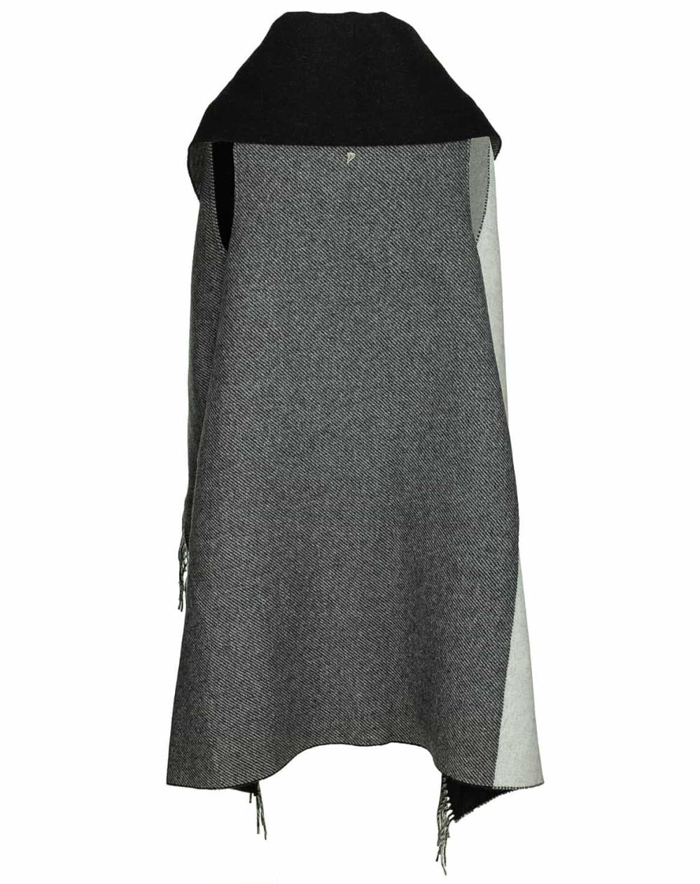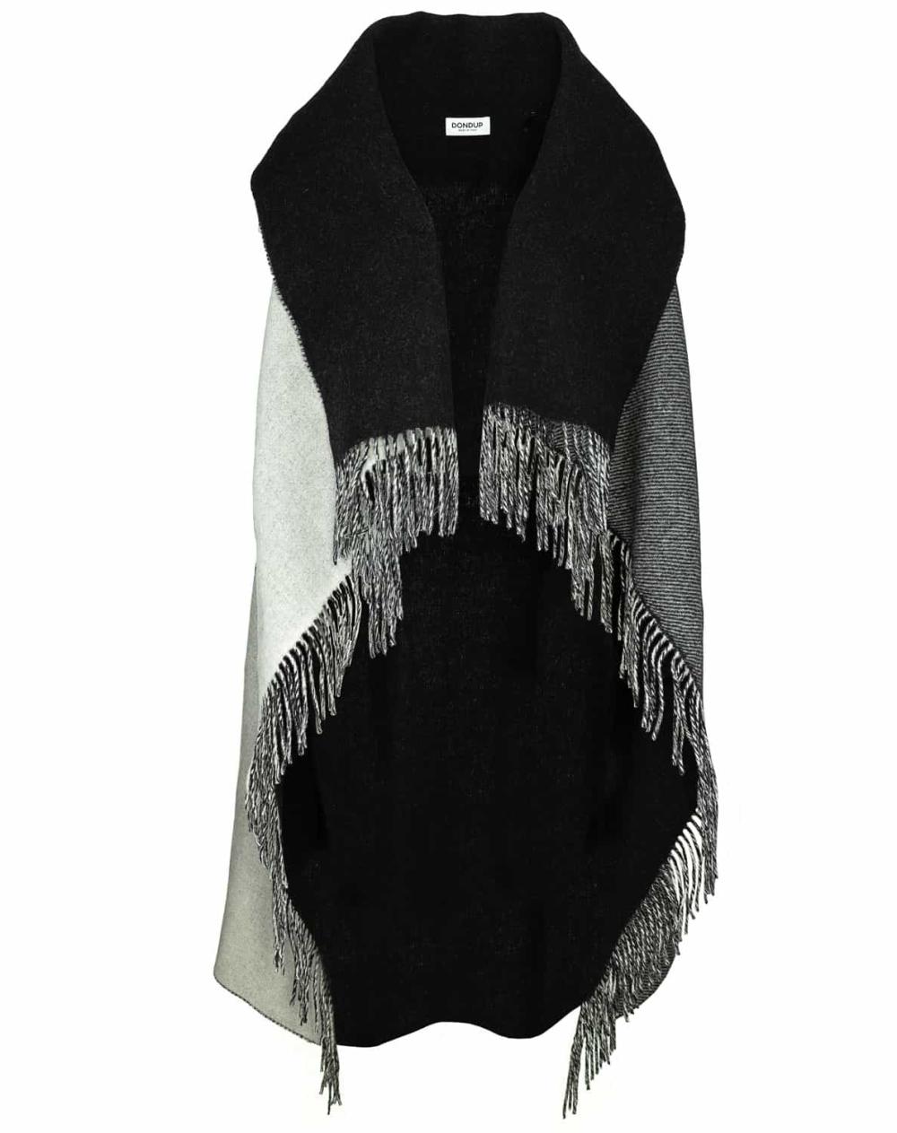 Der Poncho von Dondup ist ein modischer Begleiter, der sich zu vielen Looks lässig kombinieren lässt. Der großzügige Schalkragen sowie die Farbgestaltung in Grautönen und Schwarz verleihen dem Poncho eine exklusive Optik, während die Armausschnitte wie bei einer Weste für optimalen Sitz sorgen. Der Poncho ist darüber hinaus mit praktischen Taschen ausgestattet. Die Fransenkante am Saum vollendet das Design.