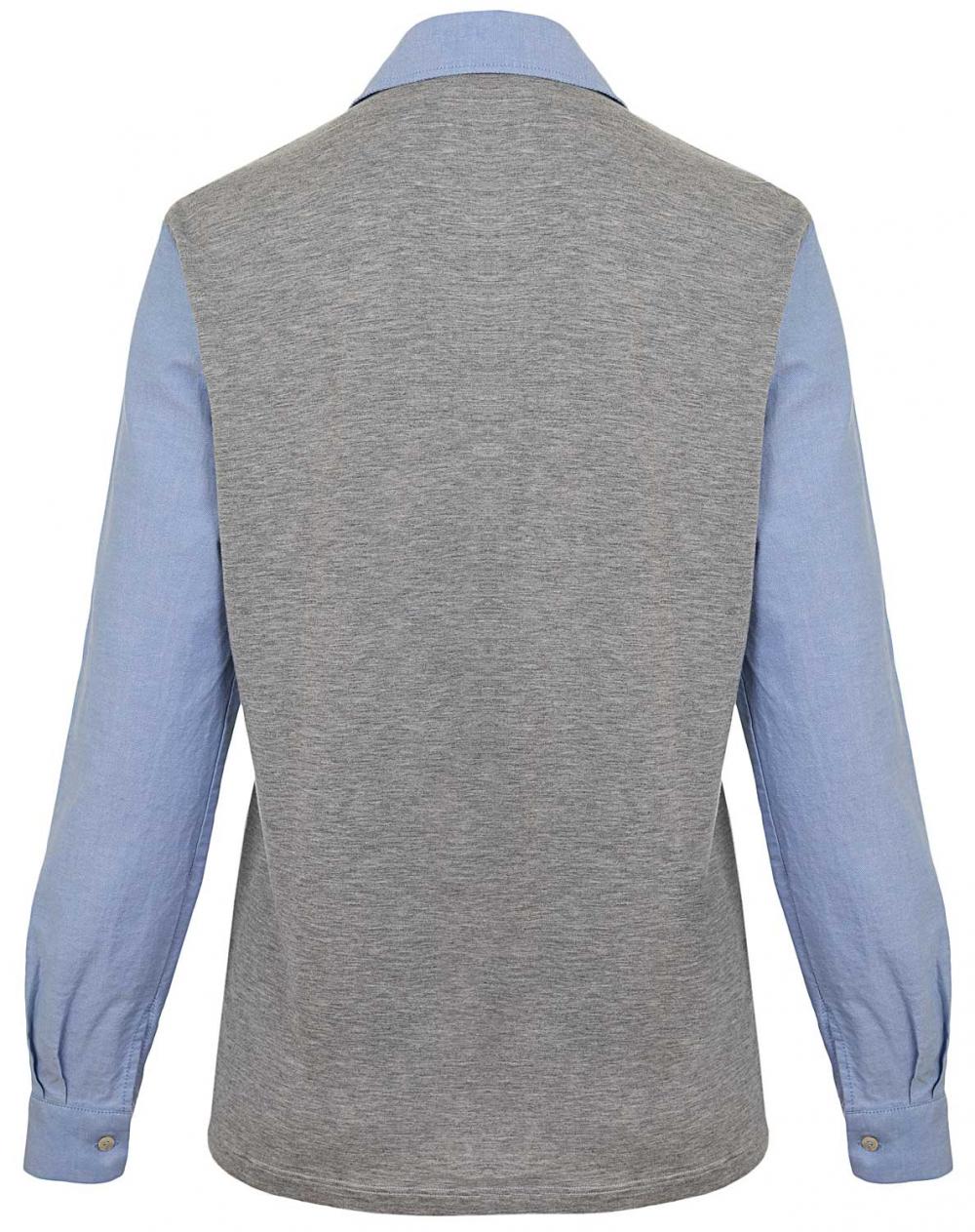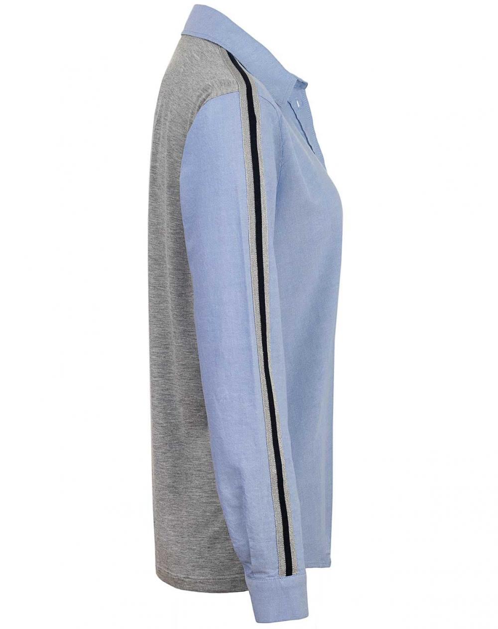Diese hellblaue Damenbluse von La Camicia ist der perfekte Begleiter für einen sportiven Casual Look. Die hochwertige Oxford-Qualität verleiht dieser Bluse einen angenehmen, feinen Griff, während der gerade, etwas lockere Schnitt für hohen Tragekomfort sorgt. Besondere Details wie der weiche Jersey-Stoff im Rückenteil und die silberne Litze an den Ärmeln runden den modischen Stil perfekt ab.
