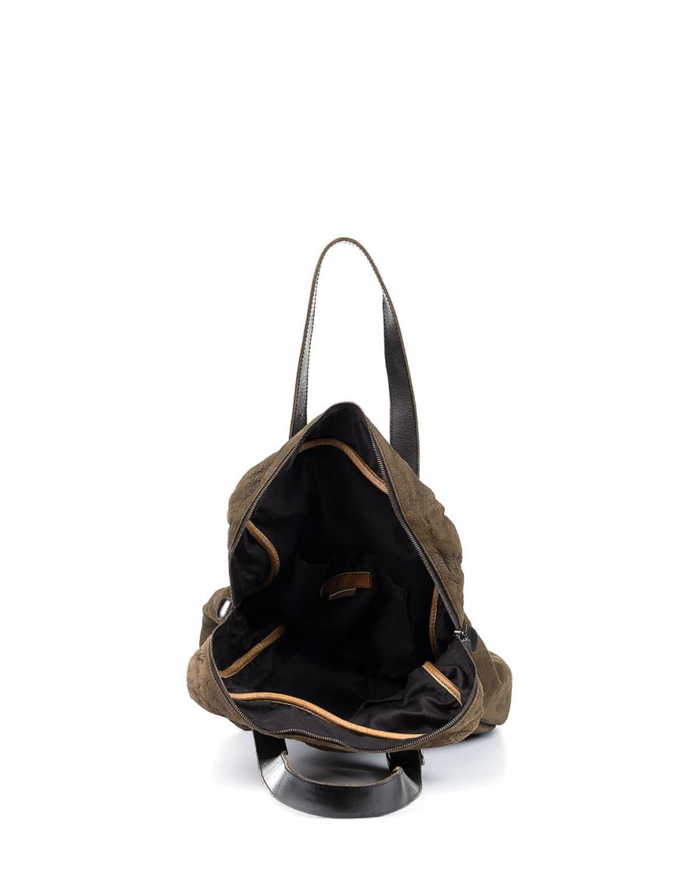Hochwertigste Verarbeitung und modernes Design machen diese Tasche von numero 10 zum perfekten Alltagsbegleiter. Komplett von Hand gefertigt, sorgen das weiche, Oliv farbene Velourleder und die Lederhenkel aus schwarzem Glattleder für eine kernige Optik. Das Hauptfach bietet ausreichend Platz für alles Wichtige, während in den beiden seitlichen Innenfächern kleinere Utensilien griffbereit untergebracht werden können. Jede Tasche ist ein Unikat, das im Laufe der Zeit einen ganz individuellen Charakter erhält. Ein absolutes Lieblingsstück, dass aufgrund des zeitlosen Designs nie aus der Mode kommt und an dem man viele Jahre Freude hat. Da die Modelle immer nur in begrenzter Stückzahl gefertigt werden, sind die Taschen von Numero 10 sehr exklusiv.