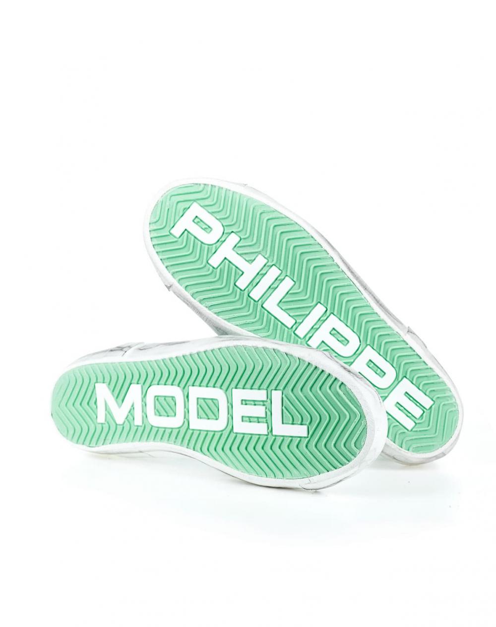 In lässiger Optik präsentiert sich der Damensneaker Paris von Philippe Model. Die Used-Effekte sowie das mintgrüne Detail an der Ferse verleihen diesem Sneaker eine extravagante Note, während die hochwertige Verarbeitung und das Baumwoll-Frotteefutter mit optimalen Trageeigenschaften überzeugen.
