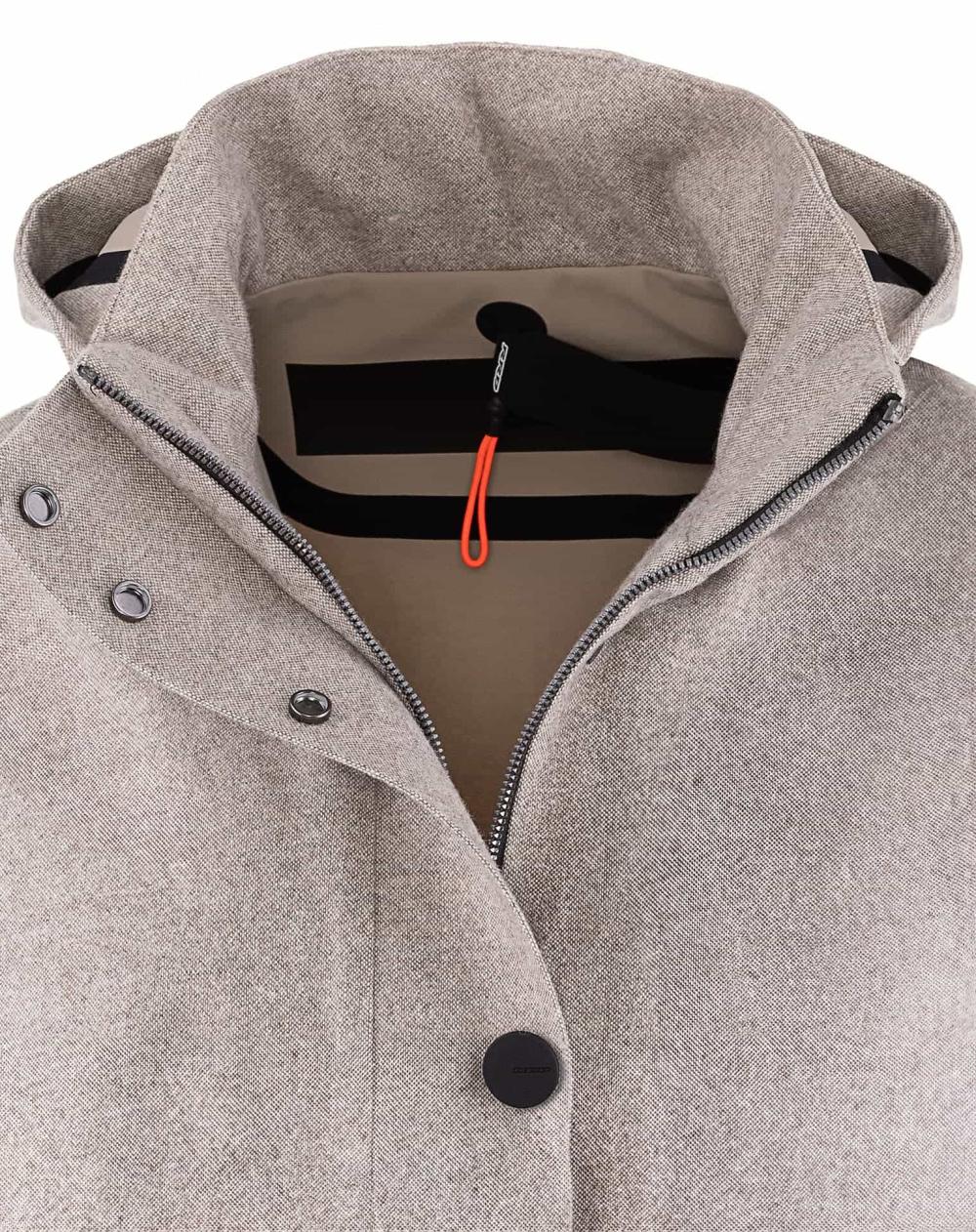 Der Damenmantel vom italienischen Label RRD kombiniert sportiven Stil mit lässiger Eleganz. Dank hochwertigster Verarbeitung bietet er nicht nur eine modische Silhouette, sondern auch funktionale Details, die optimalen Schutz und Komfort gewährleisten. Die Außenseite aus Wolle und Kaschmir begeistert mit einer feinen, glatten Haptik, während im Inneren die wasserdichte, atmungsaktive Thermo-Membran zuverlässigen Schutz bei allen Wetterlagen bietet. Die moderne Schnittführung und durchdachte Extras wie die abnehmbare Kapuze und praktische Taschen machen ihn zum idealen Alltagsbegleiter, der Funktion und Stil auf höchstem Niveau vereint.