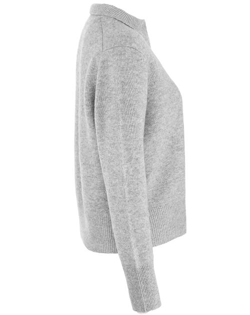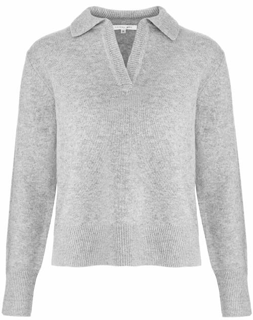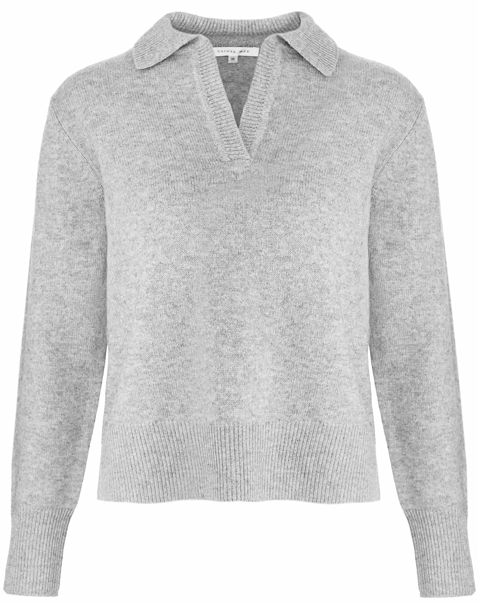 Ein wahrer Allrounder für jeden Tag: Dieser Damenpullover in Grau Melange von Sainte Mer überzeugt mit sportlich-chicer Ausstrahlung. Der Polokragen verleiht ihm einen modernen Twist, während die Rippbündchen an Ärmeln und Saum für eine perfekte Passform sorgen. Gefertigt aus edlem Merino-Cashmere-Mix, begeistert dieser Pullover mit bestem Tragekomfort.