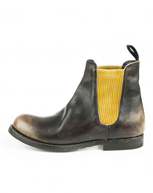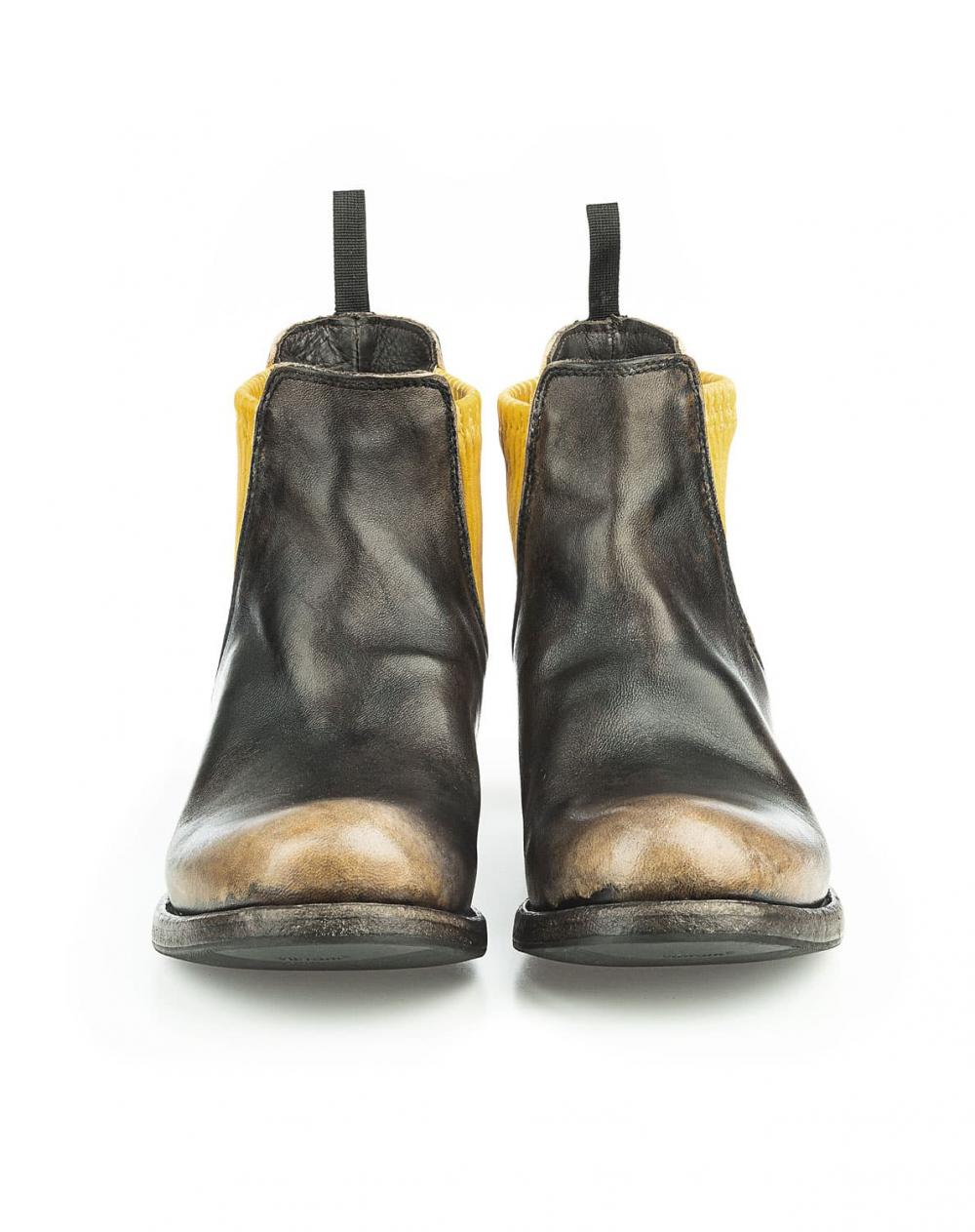Chelsea Damenboot von Shoto aus weichem Büffelleder, der höchsten Ansprüchen gerecht wird. In traditioneller Handarbeit gefertigt, überzeugt dieses Modell mit außergewöhnlichem Design und bester Qualität. Durch die besondere Bearbeitung des Leders setzt sich die Spitze und Ferse farblich ab, was den individuellen Charakter extra betont. Die seitlichen Stretch-Einsätze in Kontrastfarbe runden den Look auf perfekte Weise ab.