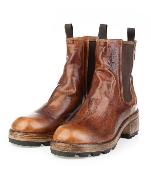 Außergewöhnliche Chelsea Stiefelette für Damen von Shoto. Mit kerniger und zugleich exklusiver Optik begeistert dieses aufwendig von Hand gefertigte Modelll, während die kernige Profilsohle optimalen Halt und besten Tragekomfort bietet. Typisch sind die seitlichen Stretch-Einsätze sowie die Laschen am vorderen und hinteren Schaft, die den sportiven Style perfekt abrunden.