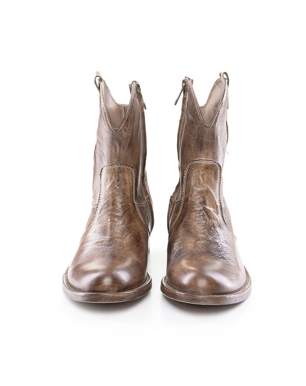 Damen Stiefelette von Shoto im angesagten Western-Style. Aus softem Känguru-Leder handwerklich perfekt gearbeitet, überzeugt diese rahmengenähte Stiefelette mit hohem Tragekomfort. Die aufwendige Bearbeitung des Leders sorgt für eine besondere farbliche Optik, wodurch diese Stiefelette äußerst vielseitig zu kombinieren ist. Der kleine Absatz rundet das kernige und zugleich feminine Design gekonnt ab.