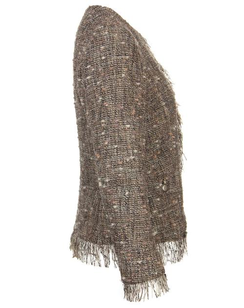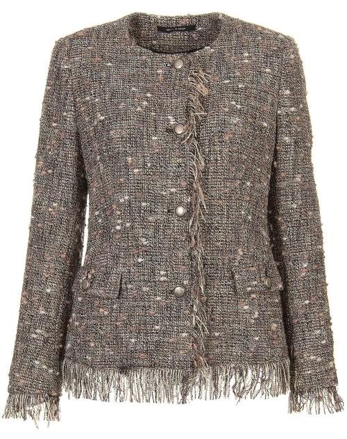 Der Blazer von Tagliatore verleiht jedem Outfit eine feminine Ausstrahlung. Ob zum Business Look oder sportlich-casual kombiniert - dieser tailliert geschnittene Blazer ist der perfekte Begleiter für einen stilvollen Auftritt. Die eingearbeiteten Glitzerfäden sowie die Fransendetails entlang der Knopfleiste, an den Ärmelenden sowie am Saum vollenden den exklusiven Style.