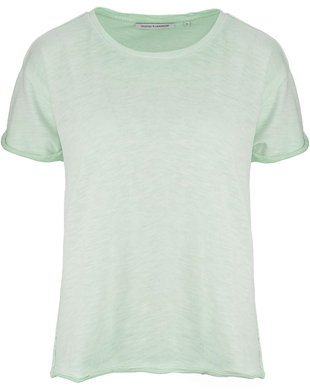 Das lässig geschnittene Damen T-Shirt von Trusted Handwork in Hellgrün verleiht jedem Outfit eine sommerliche Note. Für angenehmen Tragekomfort sorgt die hochwertige Baumwollqualität, während die Inside-Out Nähte einen besonderen Akzent setzen.