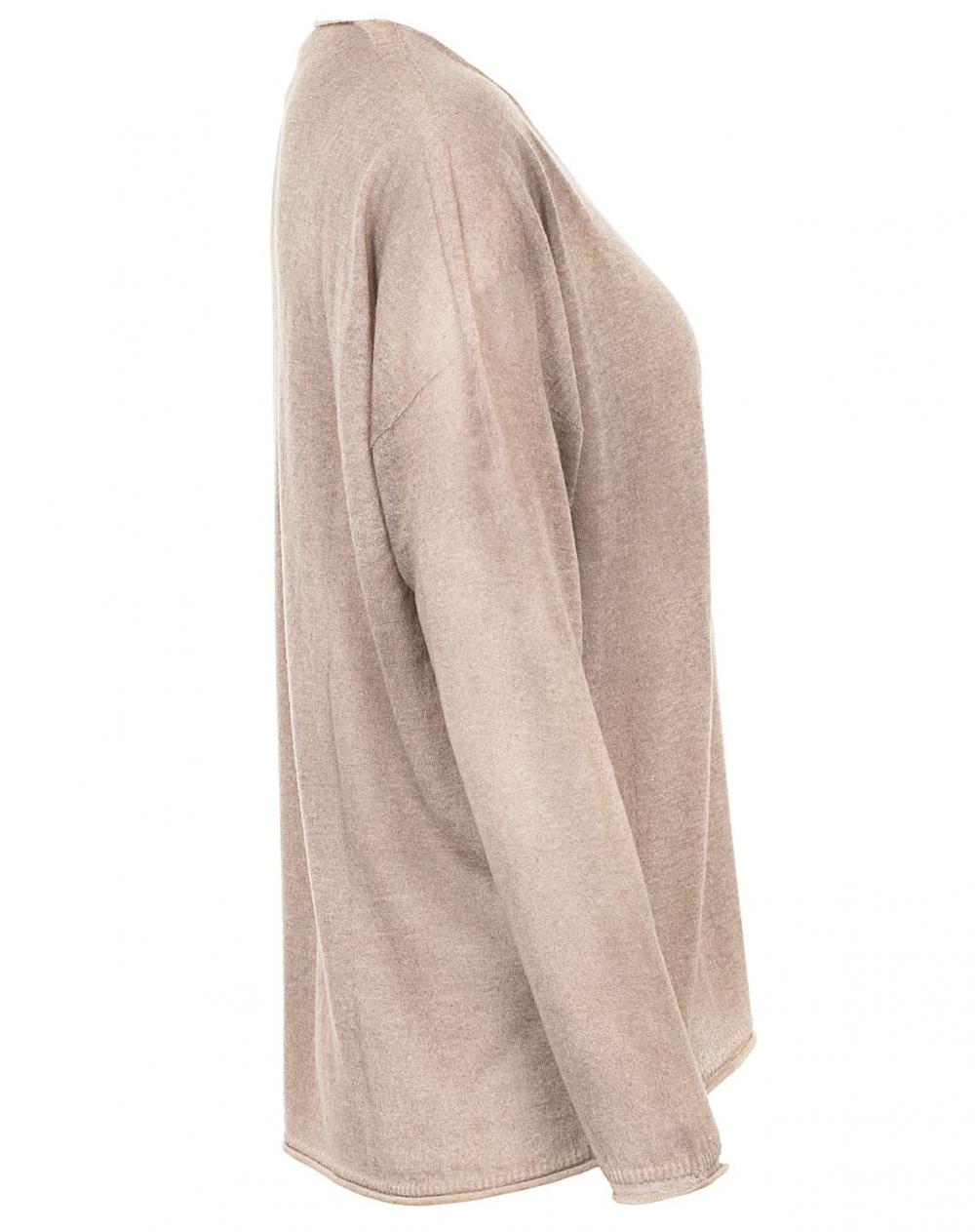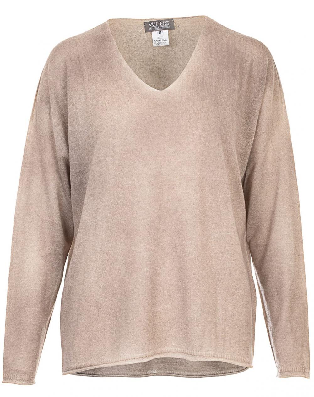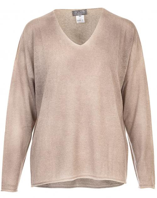 Dieser beigefarbene Cashmere Pullover von WLNS Cashmere im modischen Oversize Schnitt ist ein wahres Lieblingsteil. Das super leichte und softe Material überzeugt mit bestem Tragekomfort und ist purer Luxus auf der Haut. Die unregelmäßige Färbung betont den Vintage Look und macht jeden Pullover zu einem Unikat. Details wie der V-Ausschnitt und die Rollbündchen an den Ärmeln und am Saum runden den lässigen und zugleich femininen Stil perfekt ab.